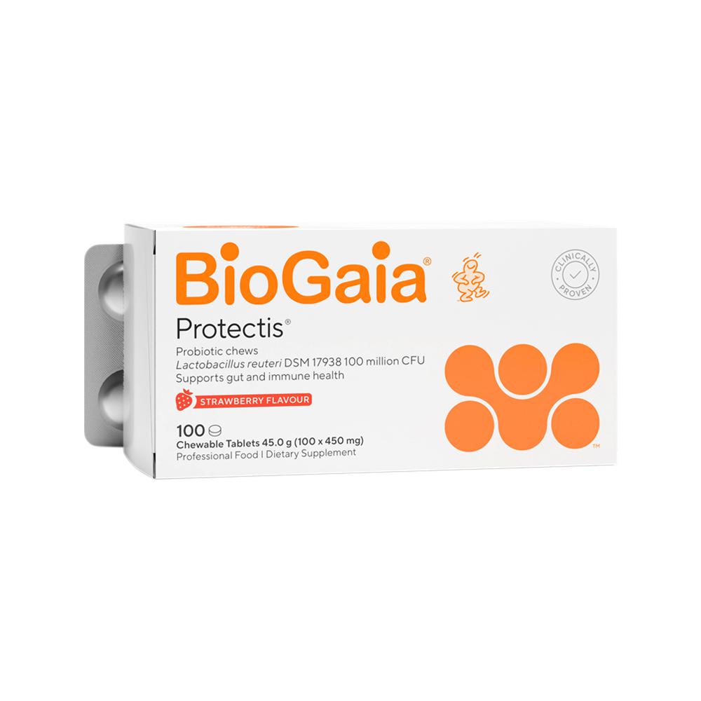 BioGaia® Protectis contains the clinically trialled strain, L. reuteri DSM 17938, sourced from human origin. This probiotic supports the health and functionof the gastrointestinal tract and immune system, with supporting research available on how BioGaia® Protectis may act within the body (modes of action). Read more