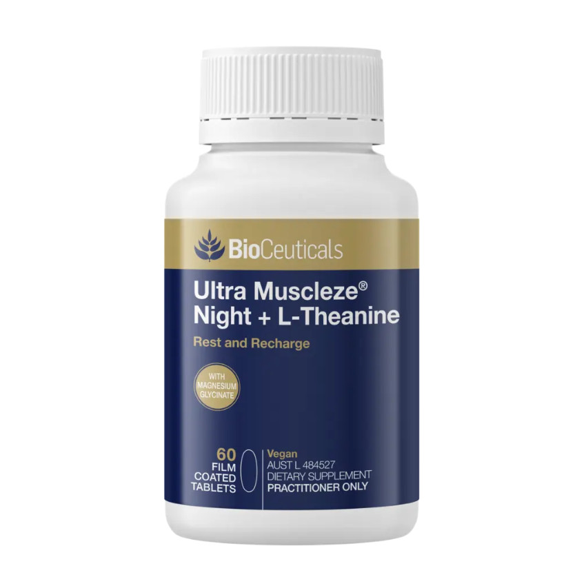 BioCeuticals Ultra Muscleze® Night + L-Theanine is formulated to help the body rest and recharge, in a convenient tablet. Featuring UltraMag®, a proprietary blend of highly bioavailable magnesium amino acid chelate, including glycinate. Always read the label and follow the directions for use. Ensure you read the warnings tab on a product page before purchase. Read more