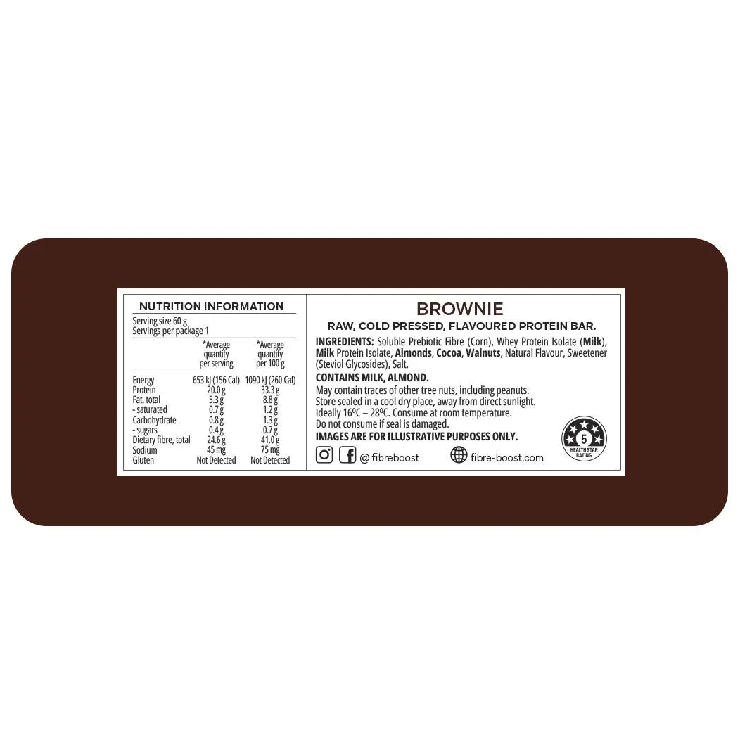 Soluble Prebiotic Fibre (Corn), Whey Protein Isolate (Milk), Milk Protein Isolate, Almonds, Cocoa, Walnuts, Natural Flavour, Sweetener (Steviol Glycosides), Salt.
