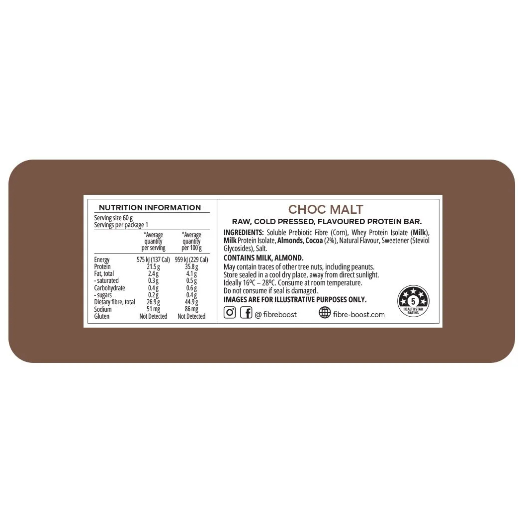 Indulge in the nostalgic taste of creamy chocolate malt, evoking memories of malted milkshakes in a guilt-free protein & fibre packed bar.