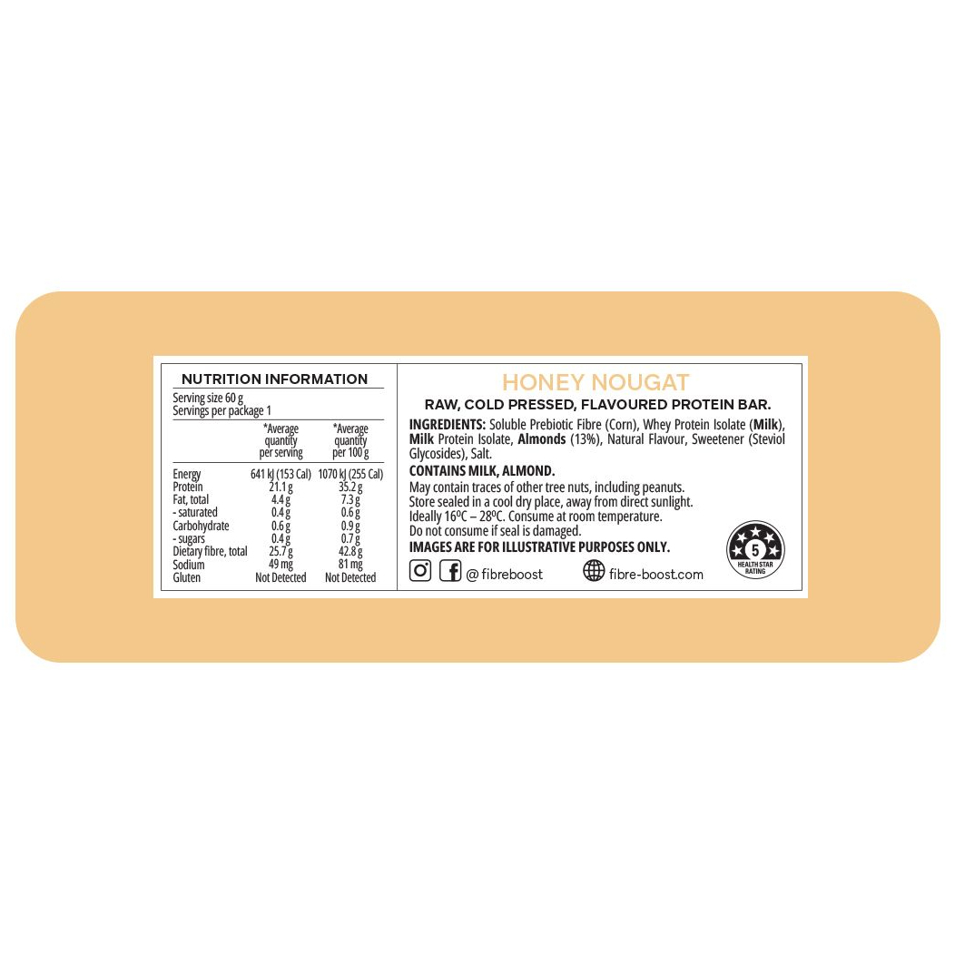 Indulge in the delicate sweetness of smooth, golden honey nougat in a guilt-free protein & fibre packed bar.