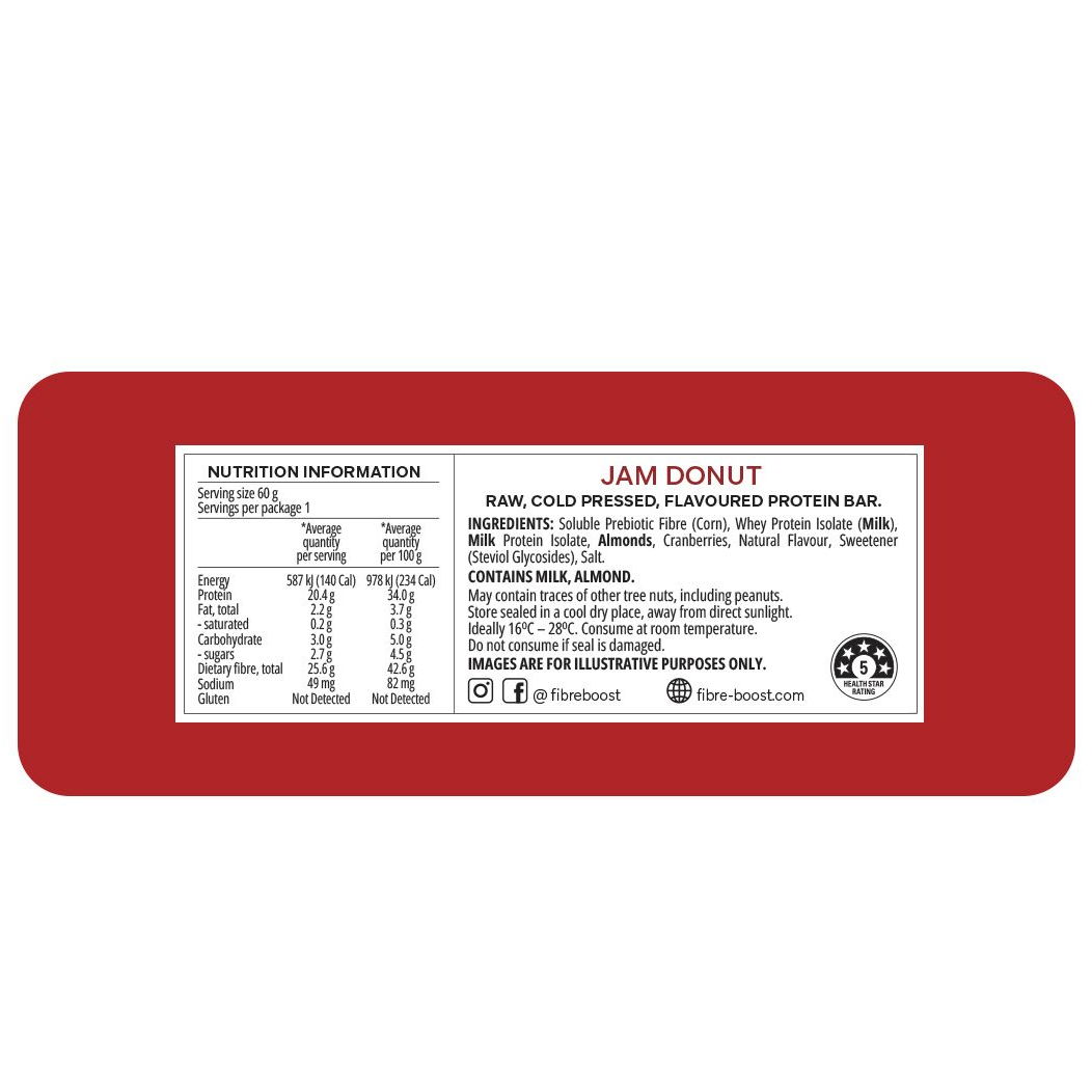 Delight in the nostalgic combination of a warm, fluffy donut filled with luscious berry jam in a guilt-free protein & fibre packed bar.