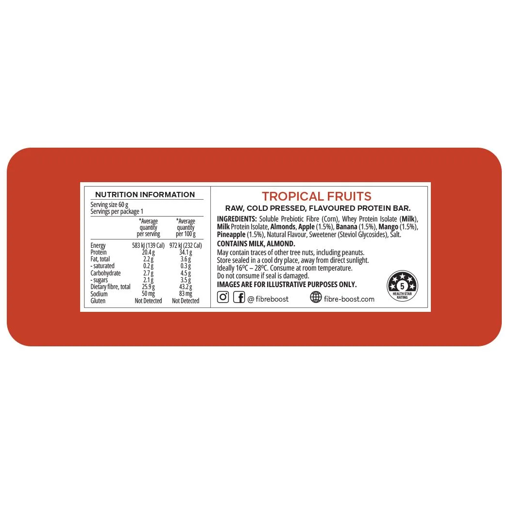 Escape to a tropical paradise with the vibrant and refreshing medley of tropical fruits, providing a burst of exotic flavour in every bite in a guilt-free protein & fibre packed bar.