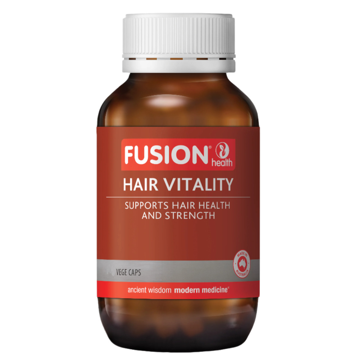 Fusion Health Hair Vitality supports hair growth and strength. With PureSeaTM, a certified organic, sustainably harvested seaweed that naturally contains iodine to support healthy thyroid gland function, necessary in maintaining hair growth.