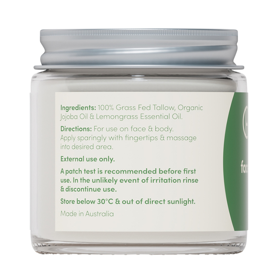 100% Grass Fed Tallow, Certified Organic Jojoba Oil, Lemongrass Essential Oil