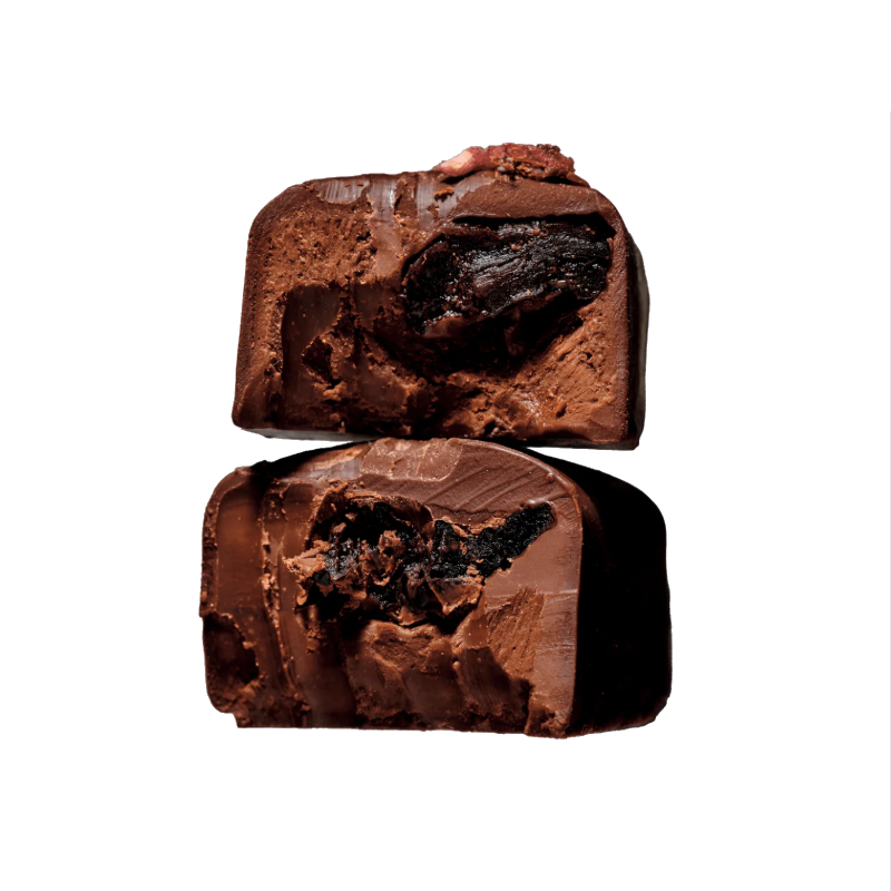 A delicious vegan ganache with sour cherries on the inside and raspberries sprinkled on the outside. Tangy and sweet, smooth and creamy a delicious combination of antioxidant rich berries and cacao.
