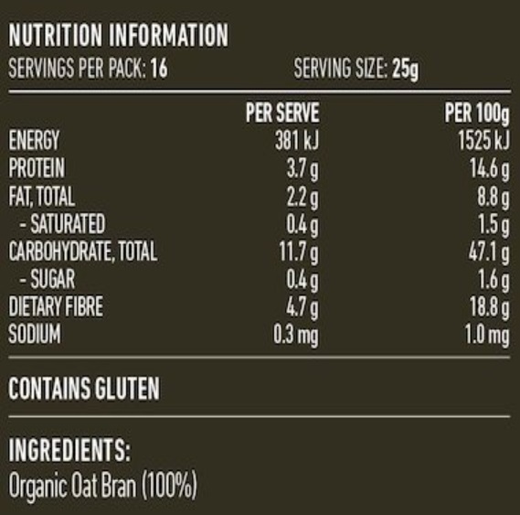 Lotus Organic Oat bran is non GMO, certified organic, suitable for vegan and a good source of fibre.