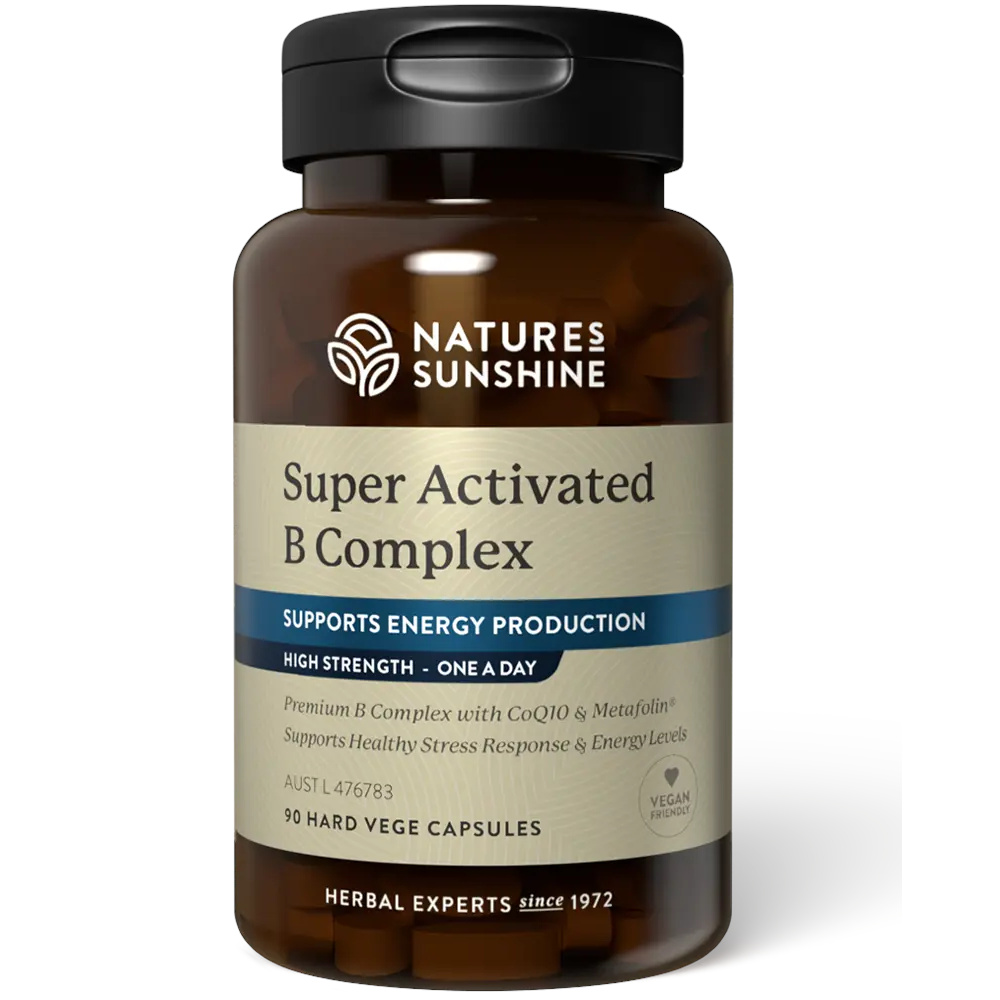 Nature’s Sunshine Super Activated B Complex contains high dose activated B vitamins, including B2, B6, methylfolate (folate) and mecobalamin (B12), to enhance energy levels and maintain skin, eye, hair, brain & heart heath. The perfect formula to help you get the most out of your day.