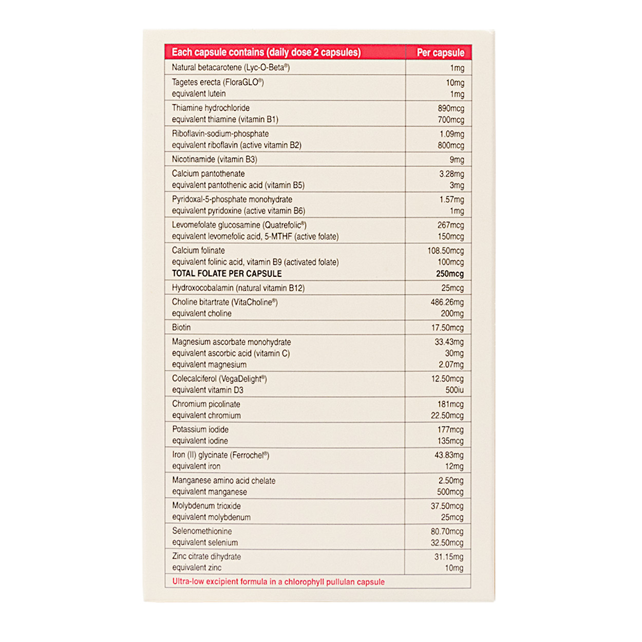 | TOTAL FOLATE PER DAILY DOSE | 500mcg |