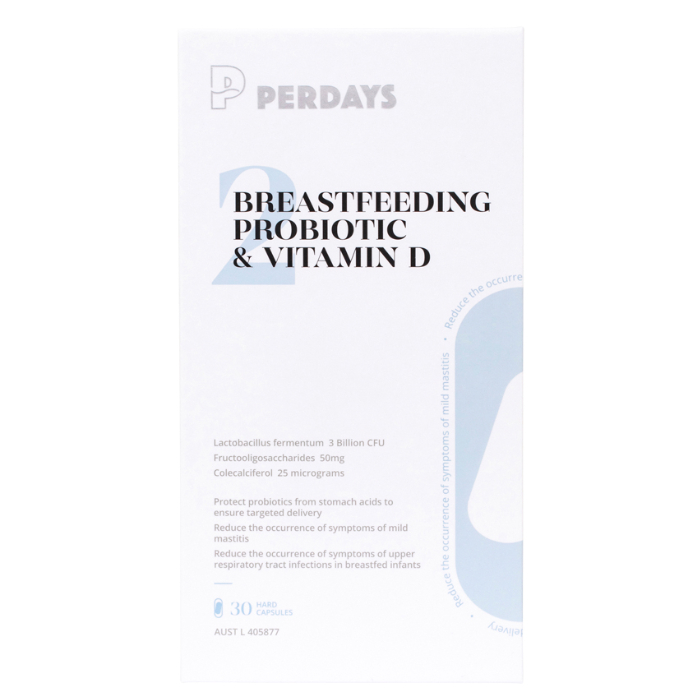 Perdays Breastfeeding Probiotic & Vitamin D is Formulated with 3bn CFU Lactobacillus fermentum CECT5716, this powerful probiotic can help reduce the occurrence of both mild mastitis in breastfeeding mothers and symptoms of upper respiratory tract infections in breastfed healthy infants. Delivered in our patent Nutriseal-Caps™ technology for optimal absorption. Read more