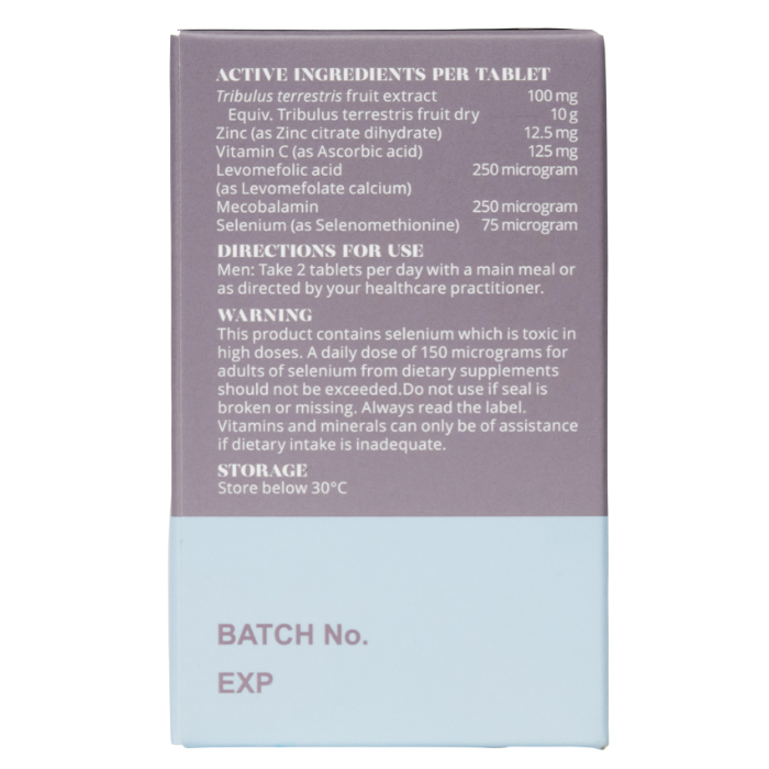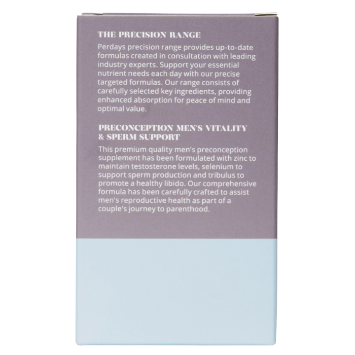 This premium quality men’s preconception supplement has been formulated with zinc to maintain testosterone levels, selenium to support sperm production and Tribulus, traditionally used in Ayurvedic medicine, to promote a healthy libido. Our comprehensive formula has been carefully crafted to assist men’s reproductive health as part of a couple's path to parenthood.