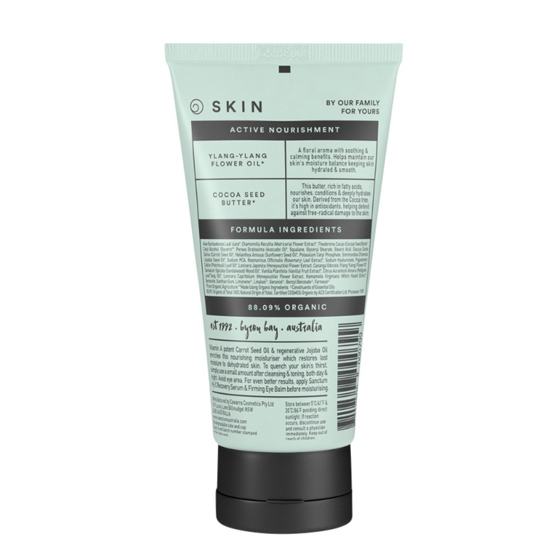 A moisturising cream that deeply hydrates without feeling greasy. The floral aroma of Certified Organic Ylang-Ylang Flower Oil soothes and calms the skin and senses.