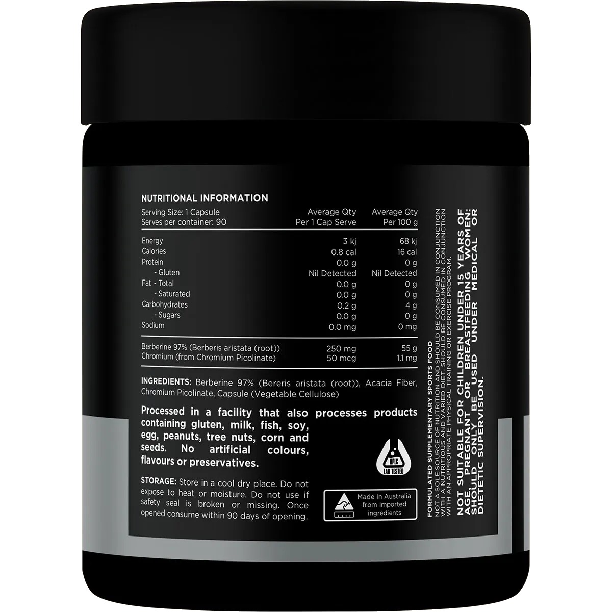 Berberine 97% (Bereris Aristata (Root)), Acacia Fiber, Chromium Picolinate, Capsule (Vegetable Cellulose)