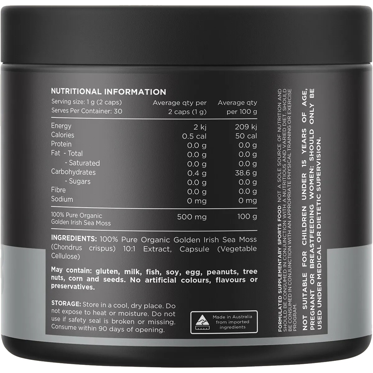 100% Pure Organic Golden Irish Sea Moss (Chondrus chrispus) 10:1 Extract, Capsule (Vegetable Cellulose).